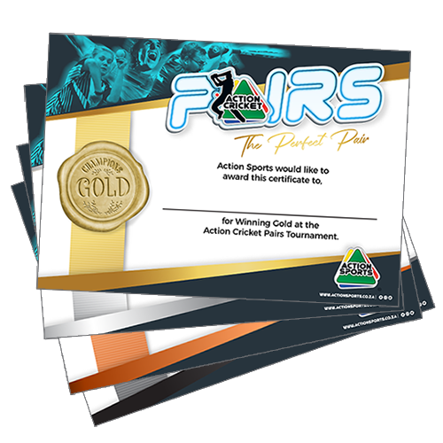 Action Cricket Pairs Certificates Gold | Silver | Bronze | Plate