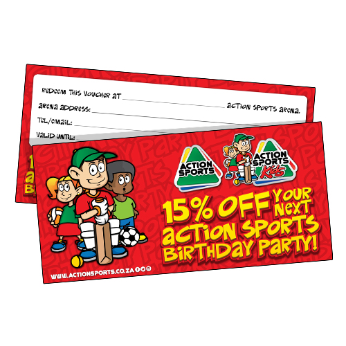 Printed Action Sports Kids Birthday Brochures Size: A4 Folded to DL Artwork in print ready pdf fo..